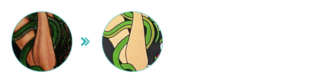 PVC arbejder i fuld farve. Ingen nuancer, skygger, lyseffekter eller transparenter. Hver farve vil være en flad, skarp nuance, adskilt fra de andre.